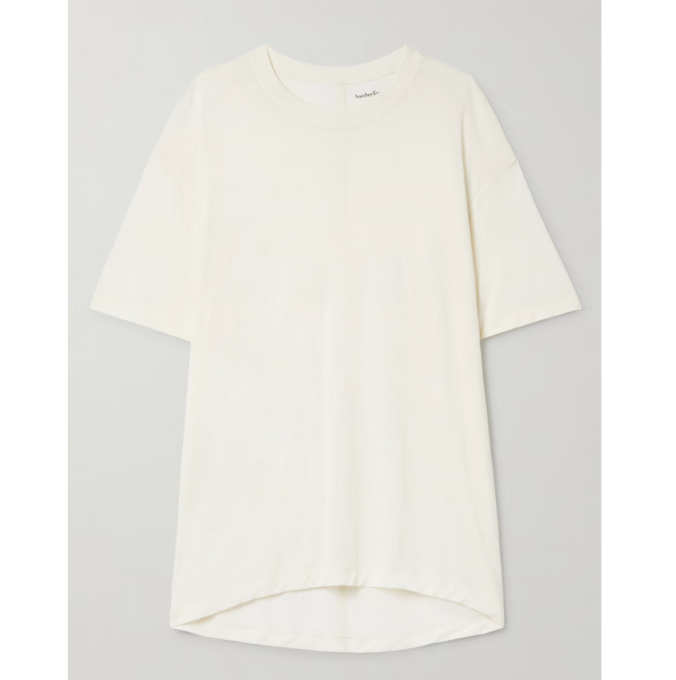 “The drape of Another Tomorrow’s Boy Lyocell-Jersey T-shirt evokes the fluidity of Greek sculpture, a masterclass in sheer fabric done right.”