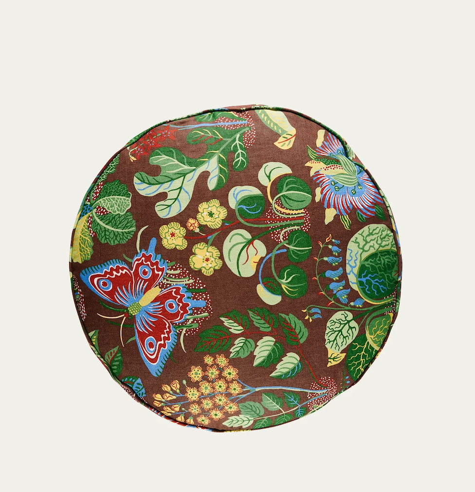 Give your dog a chic place to curl up and dream their sweet doggie dreams. This generously sized round dog bed is covered in our Exotic Butterfly pattern, a faithful reproduction of a design by acclaimed midcentury architect Josef Frank that bears his signature whimsy and warmth. Finished with a self-welt, it’s tailored to fit in with even the most formal of living rooms.