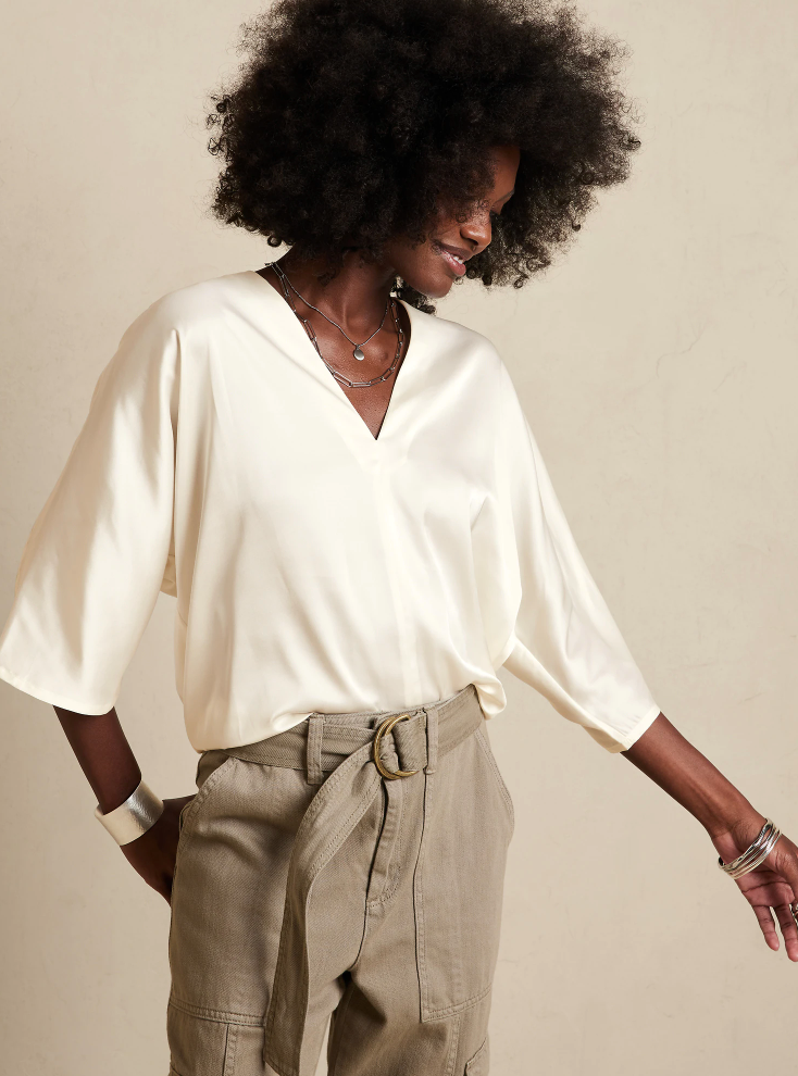 When there’s an in-between spring and summer transition happening, a quarter-sleeve top will be a lifesaver. You can layer this under a blazer or wear it on its own with a loose pair of pants or a pencil skirt if you’re wanting to feel more feminine in the office.