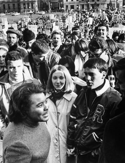 Amidst the rubble, Hall led the vigil attended by 50 African-Americans including Dr. King and Rev. James Bevel. At 22, Hall had only recently graduated from Temple University with a degree in political science, but she was a civil rights veteran. She immersed herself in the principles of nonviolence during high school at the Fellowship House, a social justice organization in her hometown of Philadelphia, PA. While in college, she was arrested attempting to integrate Barnes Drive-In, an Annapolis restaurant next to the State House, for which she did jail time. Hall also knew from the pulpit, as her father founded the Mount Sharon Baptist Church in 1938. (Rev. Berkeley Hall considered Prathia his successor, which would come to full fruition in 1978 when she took over.)