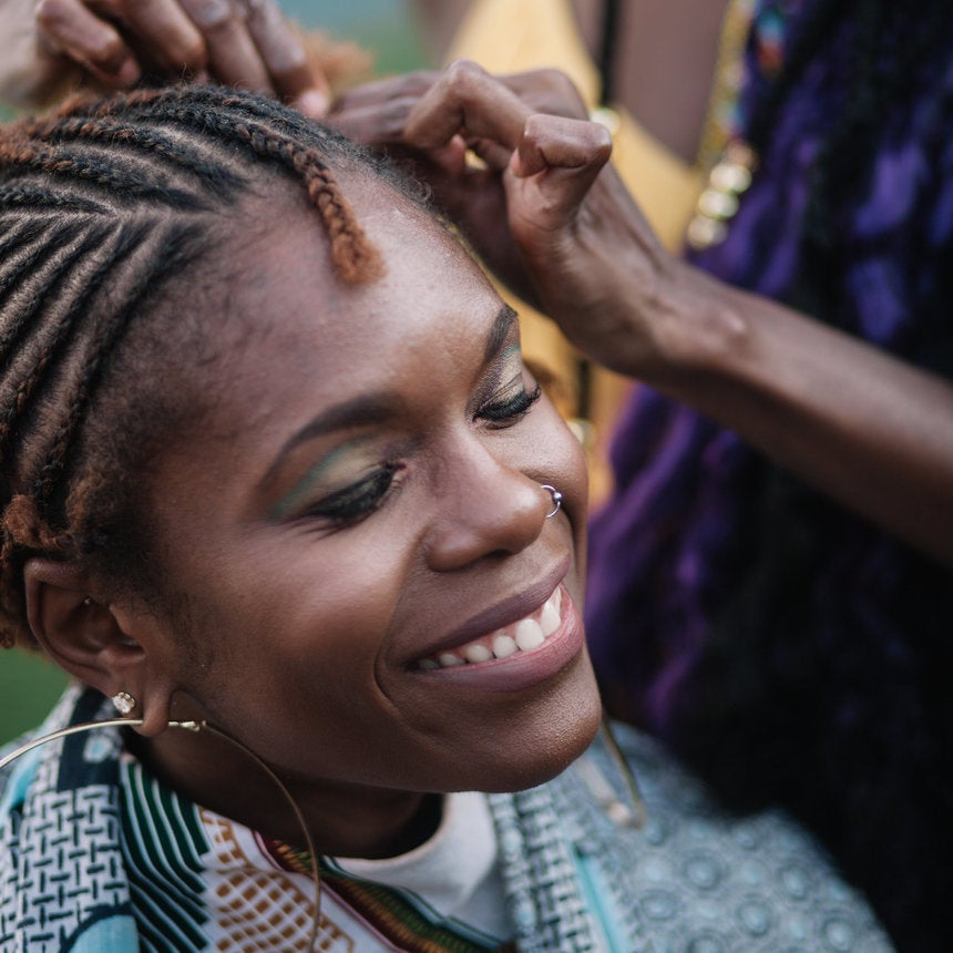 As women sit and get their hair braided in traditional Yoruba Nigerian styles, with decorative beads, they’re taught about the hairstyles history. Visitors got their portraits taken and there was merchandise with proceeds going toward women-focused activism groups like Black Women’s Blueprint and Arab American Association.