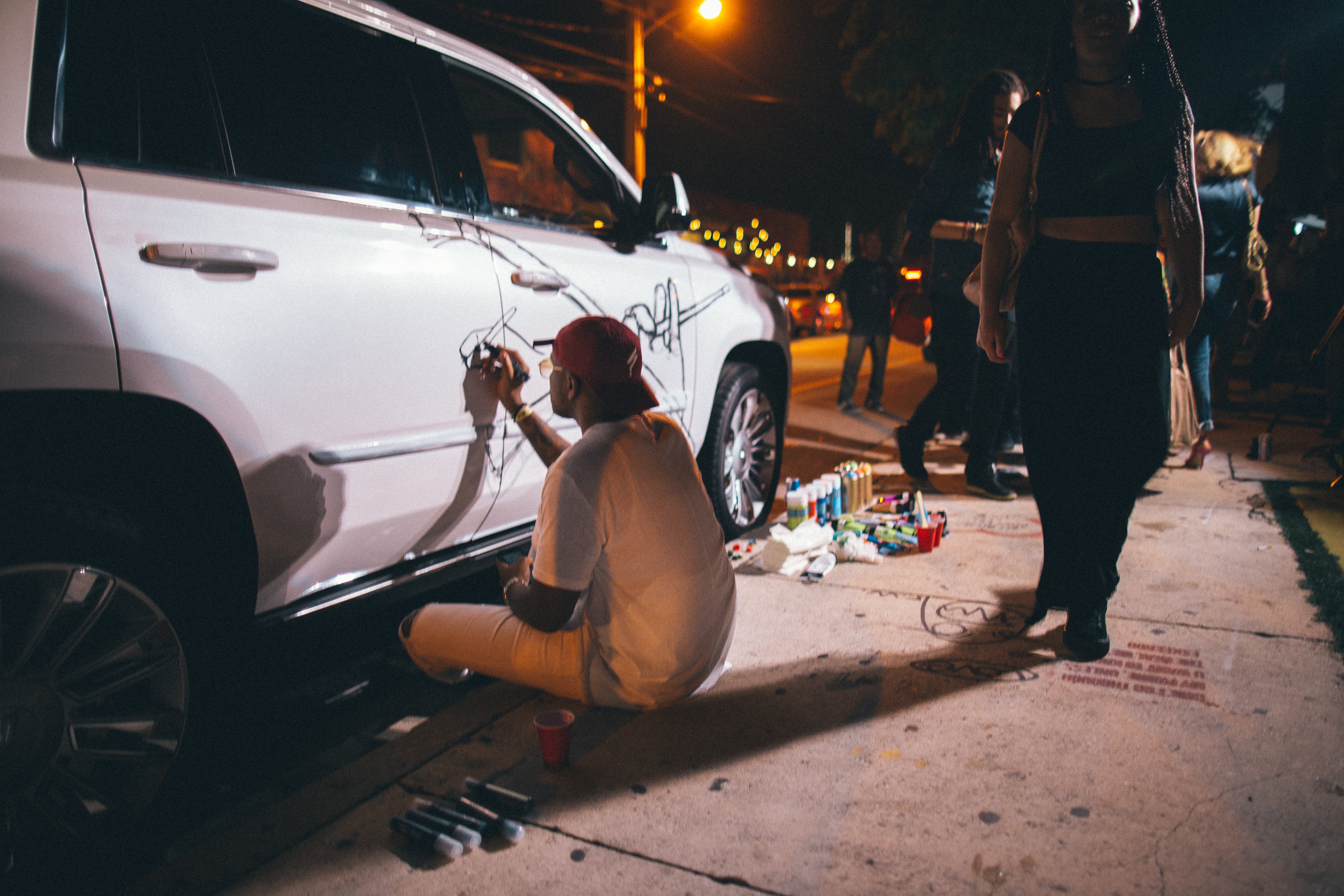 Artists paint outside at the REVOLT x Cadillac Present #ArtOfDaring during Art Basel in Miami.