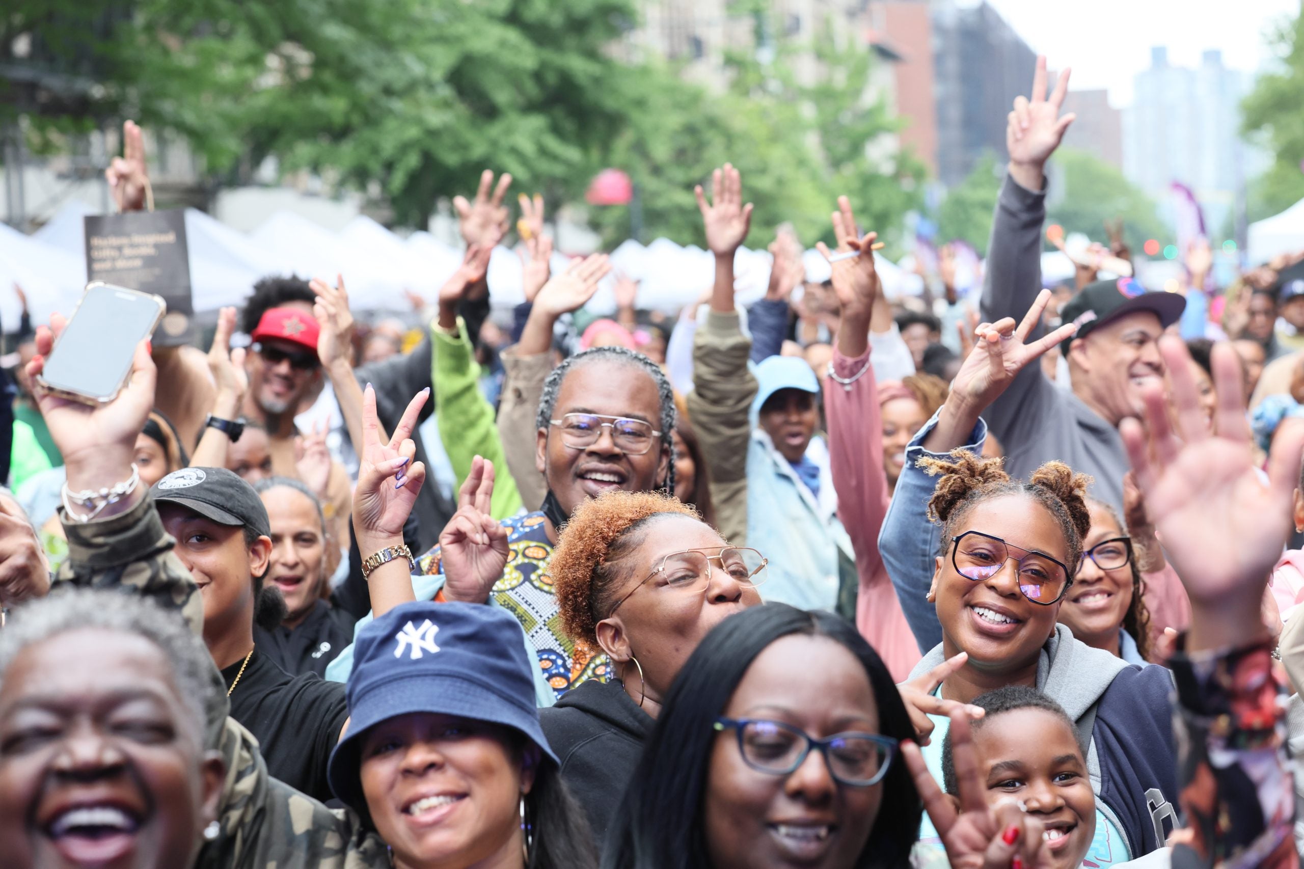 Throughout the day, The Schomburg Center buzzed with energy. A Black pop culture trivia game brought laughter to the Langston Hughes Auditorium. A DJ set by D-Nice had attendees on their feet, while hip-hop legend Slick Rick and Harlem-based ensemble The Soapbox Presents: Stoop Sessions delivered performances that turned the street into a dance floor.