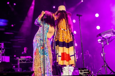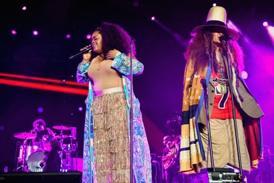 And it’s not just the street style—our iconic performers are hitting the festival stages in their best gear. Joining the Roots crew last night, Jill Scott and Erykah Badu took the stage to sing a slew of their hit songs.