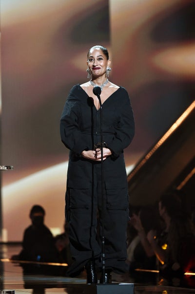SANTA MONICA, CALIFORNIA – DECEMBER 07: 2021 PEOPLE’S CHOICE AWARDS — Pictured: Tracee Ellis Ross speaks on stage during the 2021 People’s Choice Awards held at Barker Hangar on December 7, 2021 in Santa Monica, California. (Photo by Alberto Rodriguez/E! Entertainment/NBCUniversal/NBCU Photo Bank via Getty Images)