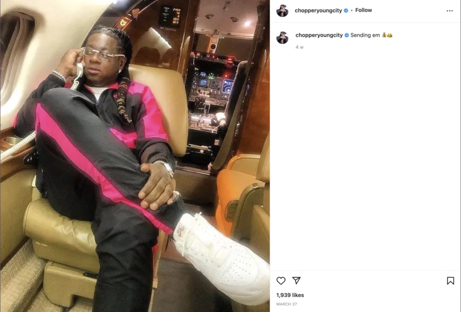 Per the TMZ report, authorities referenced a specific image of the New Orleans rapper sitting on a plane with his caption reading, “Sendin em,” followed by a money bag and crown emoji.