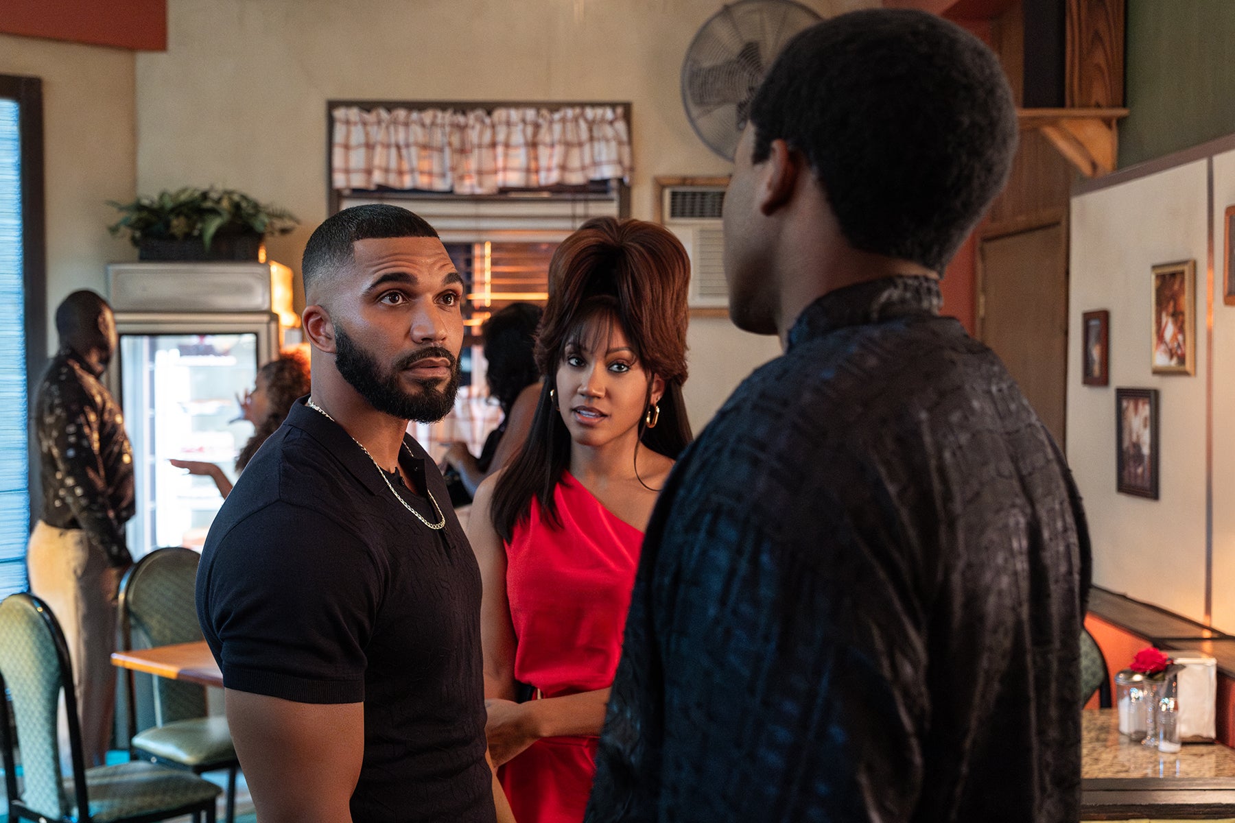 Despite the drama between their characters, the off-screen friendship between Da’Vinchi and Anthony made it easier to build tension and intimacy on screen. “We really became friends during BMF, and we got to talk about how we wanted to bring this to life,” Anthony said. “He’ll come into my trailer before we shoot a scene like, ‘All right, let’s run this.’ So we get to play and really get to a place where we feel good about it.”