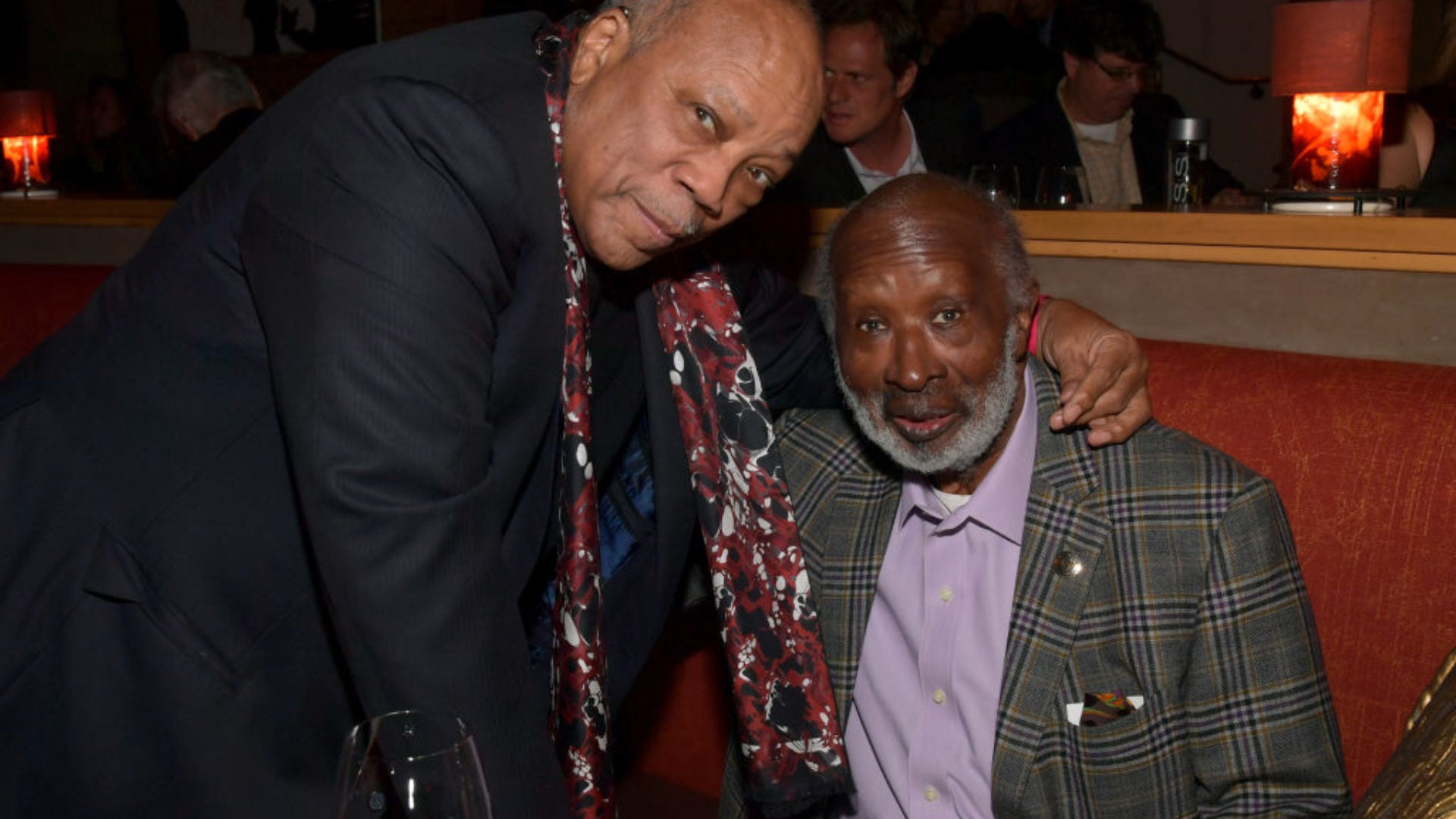 LOS ANGELES, CA – APRIL 09: (L-R) Record producer Quincy Jones and music executive Clarence Avant attend an evening with Quincy Jones and The Jazz Foundation of America at Vibrato on April 9, 2017 in Los Angeles, California. (Photo by Lester Cohen/WireImage)