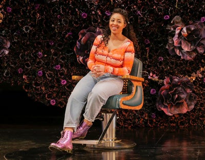 Enter Goff’s play which is a collection of monologues in the tradition of Ntozake Shange’s For Colored Girls Who Have Considered Suicide / When the Rainbow Is Enuf and Anna Deavere Smith’s Fires in the Mirror. It shines a light on othering in spaces from the boardroom to the church pew and is directed by Bianca Laverne Jones and stars Stori Ayers, Awa Sal Secka, and Shayna Small. “It feels amazing to be able to put stories on stage that represent and speak to the women in my life, that I haven’t had the opportunity to tell their stories in other ways,” says Goff. “I know I’m not the only Black woman who has this experience where I felt hair defined a major moment in my life in a way that I wish it hadn’t.”