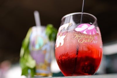 Taking place on the Friday before the Derby, The Kentucky Oaks sees the 1 1/8 mile racing of 3-year-old fillies (young female horses). The race is run with survivors of breast and ovarian cancers in mind, even featuring a parade of the brave women who’ve come out on the other side of that fight. As such, an unofficial pink theme is attached to the event, with many opting for huge pink hats and fascinators topping their equally pink-hued outfits.