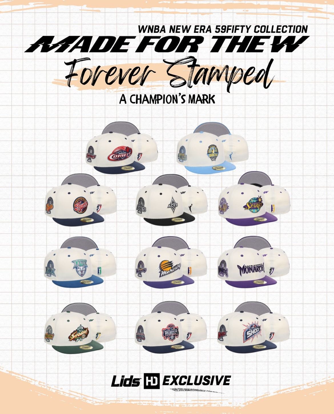 “Forever Stamped: A Champions Mark,” the second partnership between Made For The W and Lids releases on Tuesday, May 14th, on the LidsHD website at 12 PM ET as well as in Lids HD stores, select Lids Flagships, and the NBA Store NYC & HTX.