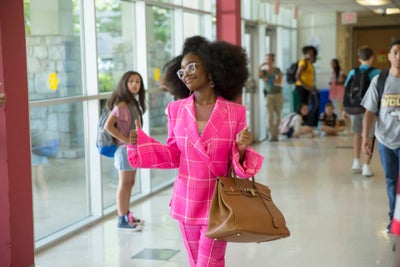 Yes, you’re seeing that right: Marsai Martin in a pink power suit, Berkin bag on her arm, walking the halls of school like a boss. Oh, and did we mention the glorious Afro she’s sporting?