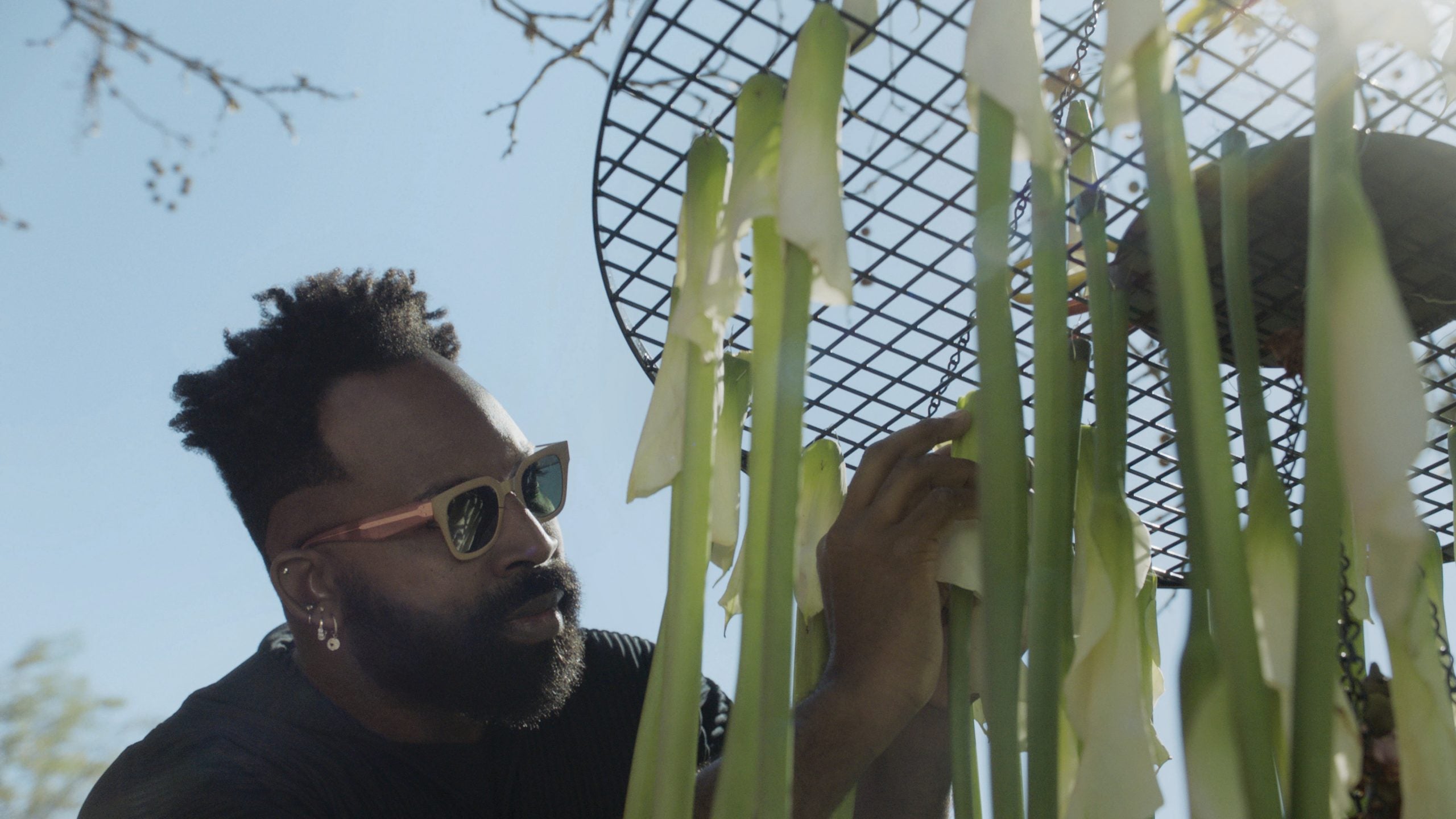 “I’ve always been interested in forwarding the conversation on Black creativity, on freedom, on my own version of Black excellence and what that looks like,” he says. During each approximately seven-minute episode, for which his mom plays the organ and his sister is known to make cameos, he talks about inspiration with his guests. In response, he makes exquisite floral installations in their honor. It’s a win-win for all.