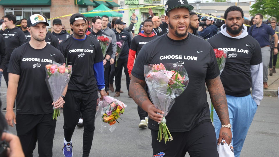 In a joint effort, NHL’s Sabres, the NFL’s Bills, and the NLL’s Bandits have sold T-shirts for a $25 donation with the phrase “Choose Love” and team logos. According to ESPN, all proceeds go towards the Buffalo 5/14 Survivors Fund, which supports the survivors of the deceased and others directly affected, and the Buffalo Together Community Response Fund, which addresses other needs in the community related to the mass killing.