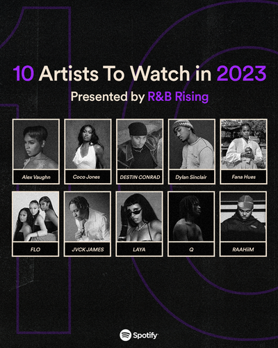 Rounding out the list are artists like JVCK JAMES, Dylan Sinclair, Fana Hues, and more. Check out Spotify’s full list of Artists to Watch below, highlighted in their R&B Rising playlist.