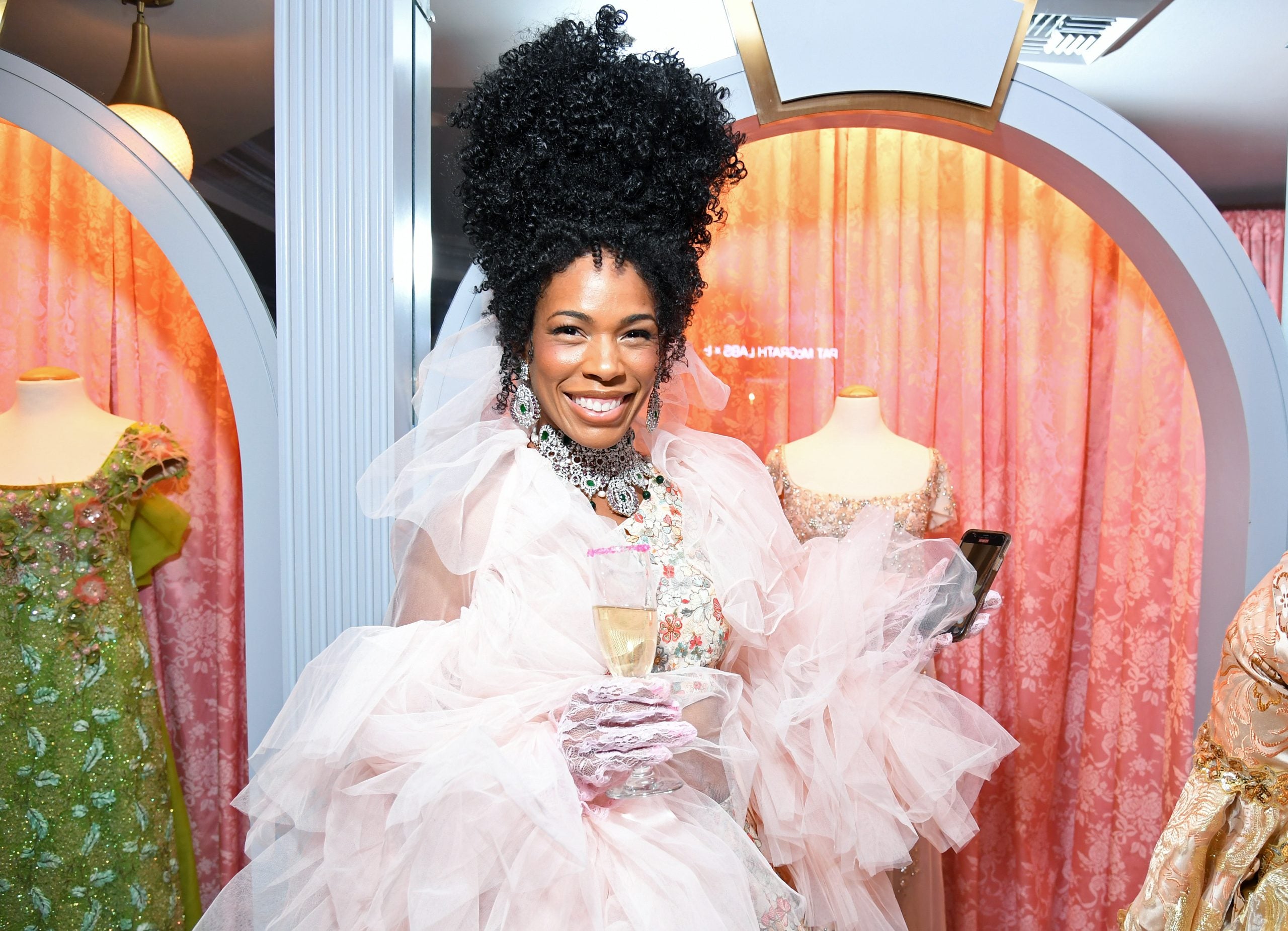 The Snowfall actress got into the spirit, donning full regal Regency garb for the premiere event
