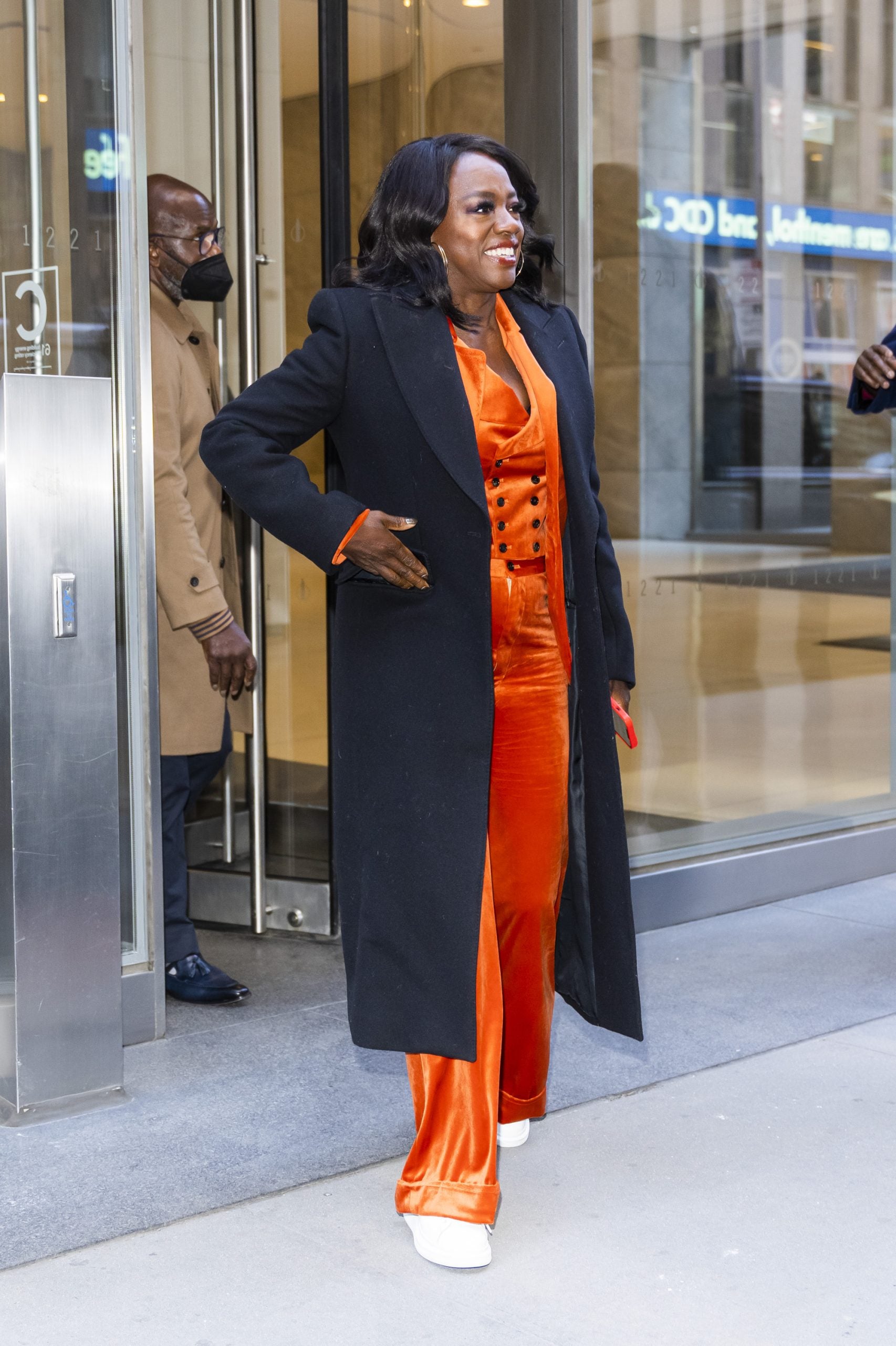 The star was spotted strolling Midtown Manhattan in chic orange velour