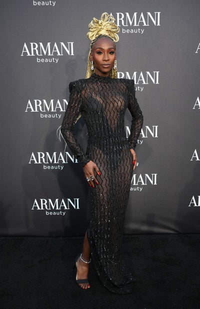 The actress kept it sheer and sultry at Armani’s Culver City event