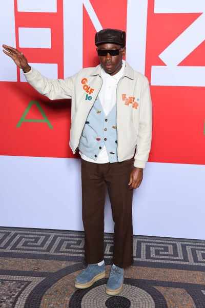 Tyler flaunted pieces from his Golf Le Fluer fashion brand while attending Kenzo’s runway show.