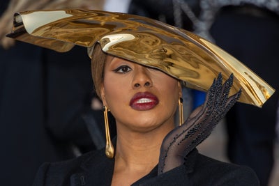 French comedian Fary was spotted street-style ready outside Rains boutique in Paris during Fashion Week.