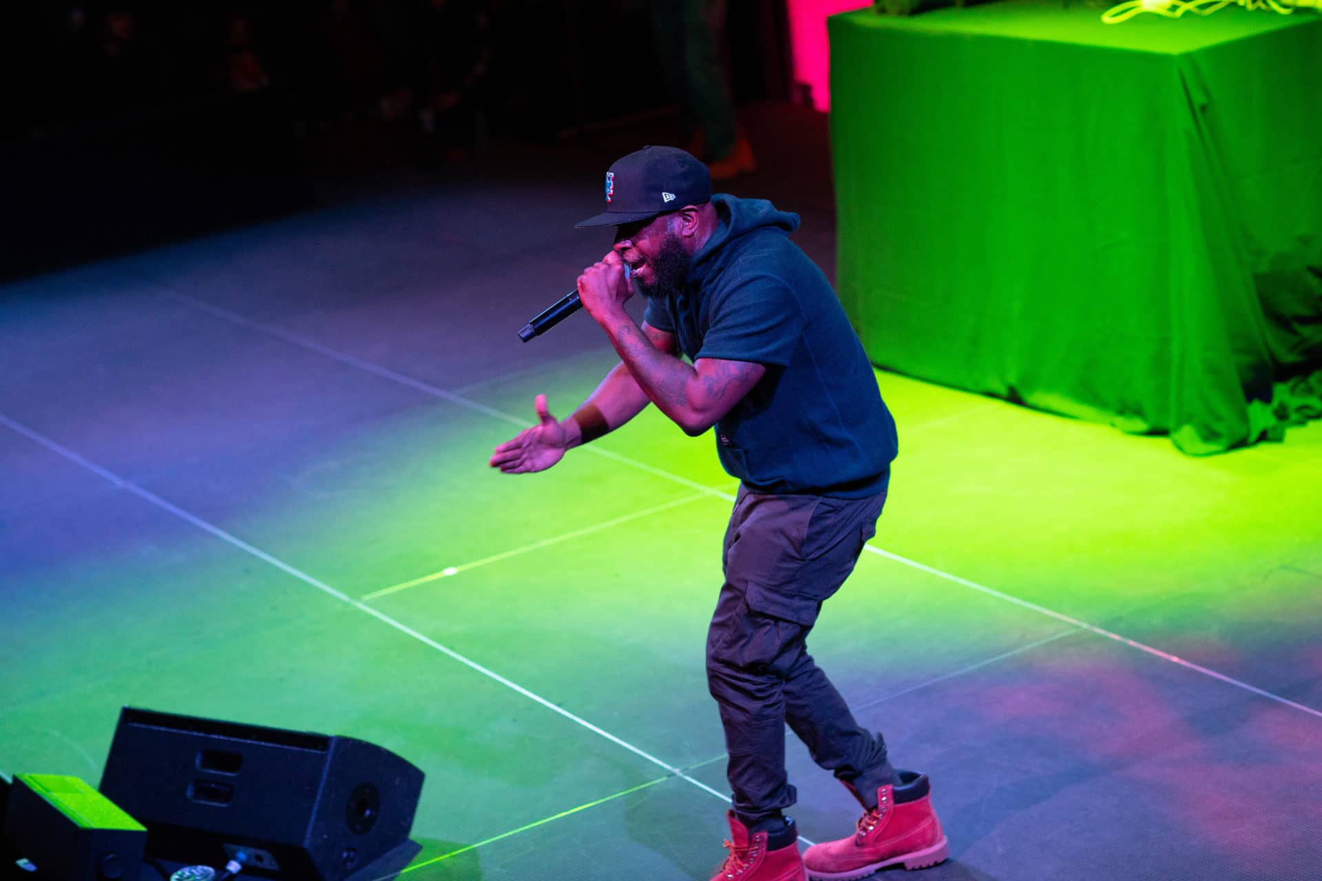 Legendary MC Talib Kweli is probably best known for his intellectual rhymes, notable collaborations, and a raw approach to activism, but on Thursday night, Brooklyn’s own tapped into a softer side, performing a slew of hits for a room full of lovers. Talib Kweli: A Love Note To Brooklyn wasn’t simply for those coupled up— although there was plenty of love to go around in BRIC’sintimate theatre — it also spoke to the ones who love hip hop, have a deep appreciation for the music that defined the culture of the late ’90s and early 2000’s, and of course, have a profound respect for the city that gave us the likes of Kweli, Mos Def, Little Kim, Notorious B.I.G. and Jay-Z.Beyond spitting some of his most popular verses —from Black Star’s “Definition” to “Just to Get By” to his standout lyrics on Kanye West’s “Get ‘Em High” — Kweli also took a few moments to speak on some of the things he holds dear to his heart: his beloved hometown and, not surprising if you follow his Twitter, fighting white supremacy. “We’re living in a time where fascism is becoming popular,” the politically-astute artist proclaimed in between doling out high-energy tracks. “People are using their entitlement and their privilege and their access to free speech —which is a beautiful thing —to defend fascism… But your freedom of speech is not under any type of threat in America.” Speaking on bigots, racists, and those who defend them, he continued, “They want unfettered, unchecked free speech. They want to be able to say whatever they want without consequence. But freedom of speech is not freedom from consequence.”