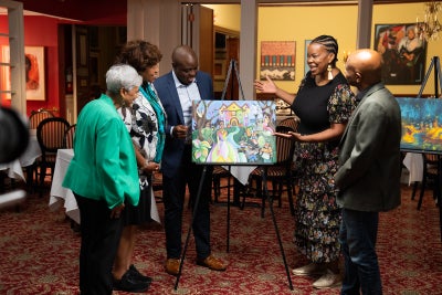 “You know, visual arts really play a role in inspiring us as artists and as designers,” Carter said during the sit down. “So we have the opportunity to reach out to a local artist, Sharicka [Mahdi]…and what we did with her was, we pitched to her our concept for the story. We didn’t show her any of our storyboards. We just pitched it to her because we wanted to see from her perspective, from a native New Orleans artist, how she would interpret what we were saying and how it resonated with her.” Madhi is an alumni of YAYA (Young Aspirations Young Artists), an arts center in New Orleans.