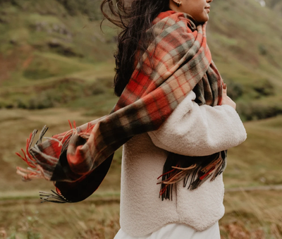 This Scottish brand unites gorgeous natural fibers and traditional (tartan, gingham, tartan, herringbone) design with a modern sustainable mission––to leave a positive impact on the planet. Made of pure lambswool (naturally insulating, breathable and hypoallergenic), this sizeable scarf (30”x 79”) beautifully adds warm color to any solid neutral. The Tartan Blanket Co. Lambswool Blanket Scarf in Buchanan Autumn Tartan.