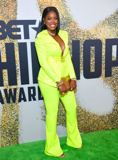 Burgeoning rapper Juju donned a head-to-toe electric green pantsuit at the BET Hip Hop Awards.