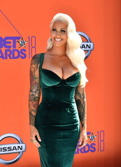 Amber Rose’s blond hair was the perfect accessory for her deep green velvet dress.