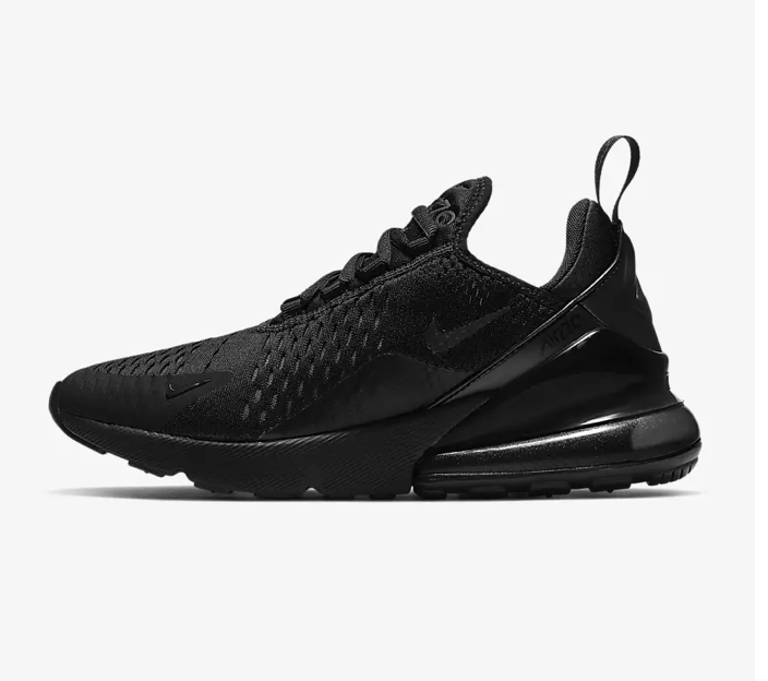 Yes, these are Nike’s, but the shiny black details deliver sex-appeal. This is Nike’s first lifestyle Air Max. It’s lightweight, with solid traction and lots of attitude. Nike Air Max 270 in Black/Black/Black.