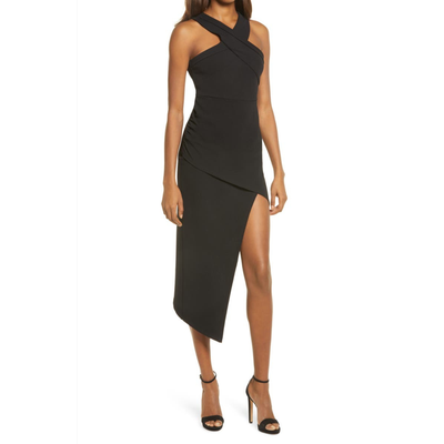 Lulus Guess Again Halter Neck Asymmetrical Midi Dress