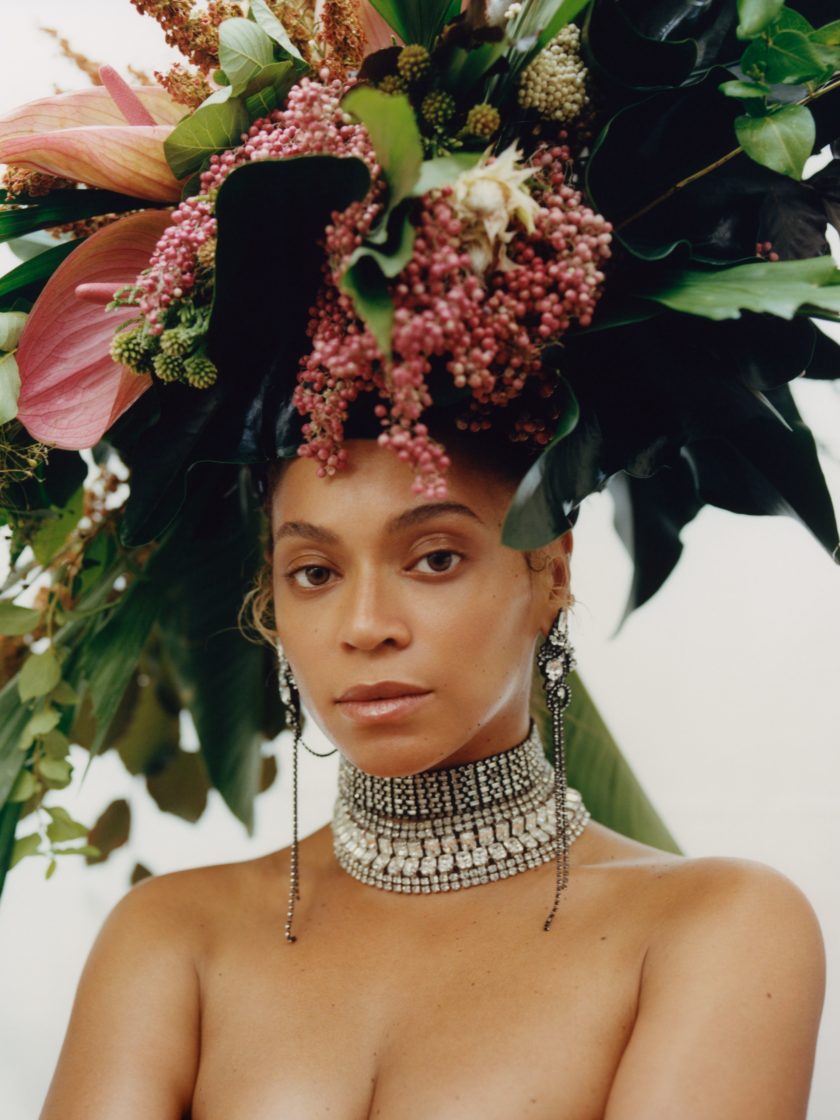 cornrows (no wigs) and natural makeup, Beyoncé poses in front of the camera wearing the hottest looks from fall/winter 2018, including a Louis Vuitton dress, a Wales Bonner suit and