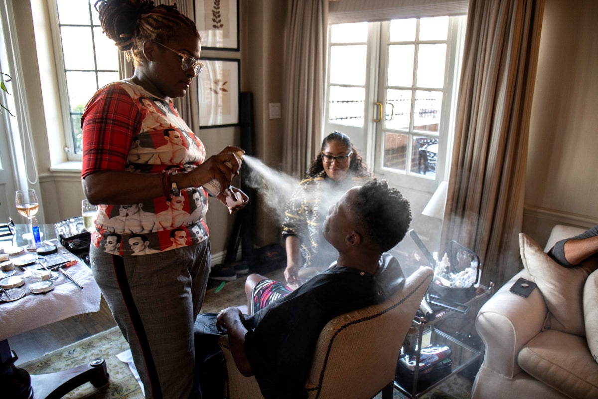 Check out some photos of Porter getting ready with his personal groomer La Sonya Gunter for the Tony Awards.