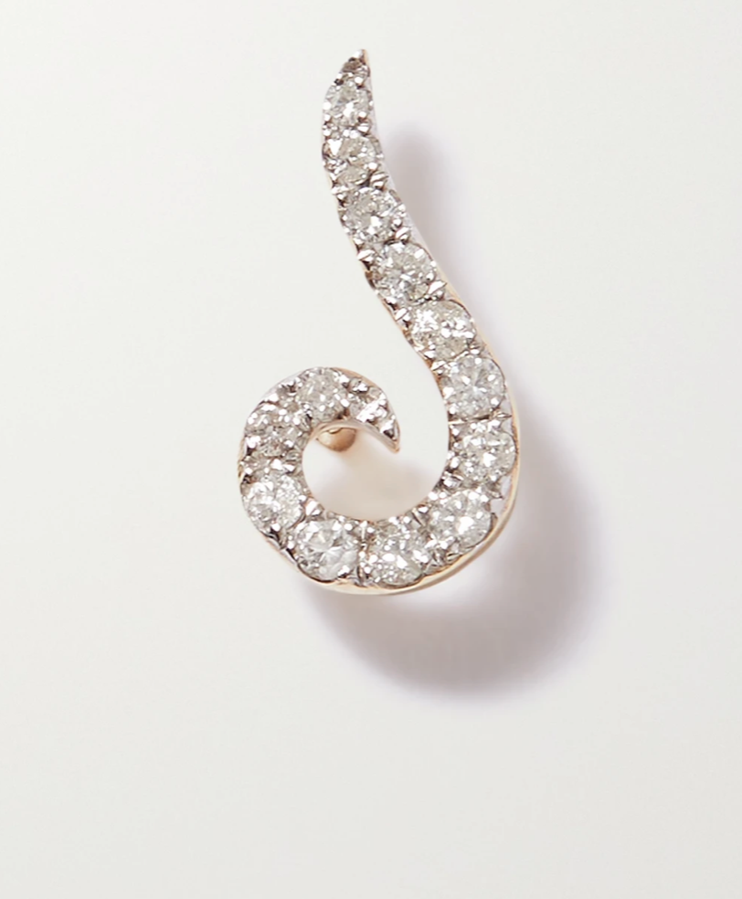 Known for her popular ceramic vases, that depict the female form and double as sculpture, this Paris-born designer of jewelry and decor says her creations “reflect the successful, powerful and funny women” that surround her. This sparkly stud looks great solo, or alongside a dainty diamond hoop. Anissa Kermiche Swirl Stud Gold Diamond Single Earring