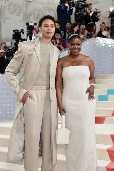 And the Met Gala content continues. This is the first time that Brittney Griner and her wife, Cherelle Griner, have attended the Met Gala. The beloved couple arrived in an effortless style, dressed to the nines in custom Calvin Klein styled by Courtney Mays. Griner had a hard year last year as she was detained in Russia for nine months. She is now back in the U.S. and happily in the arms of her lovely wife. As the two probably had a lot of date nights to catch up on, the Met Gala happens to be the ultimate date night. This is really a great moment to platform Black queer love on a massive stage like the Met Gala.