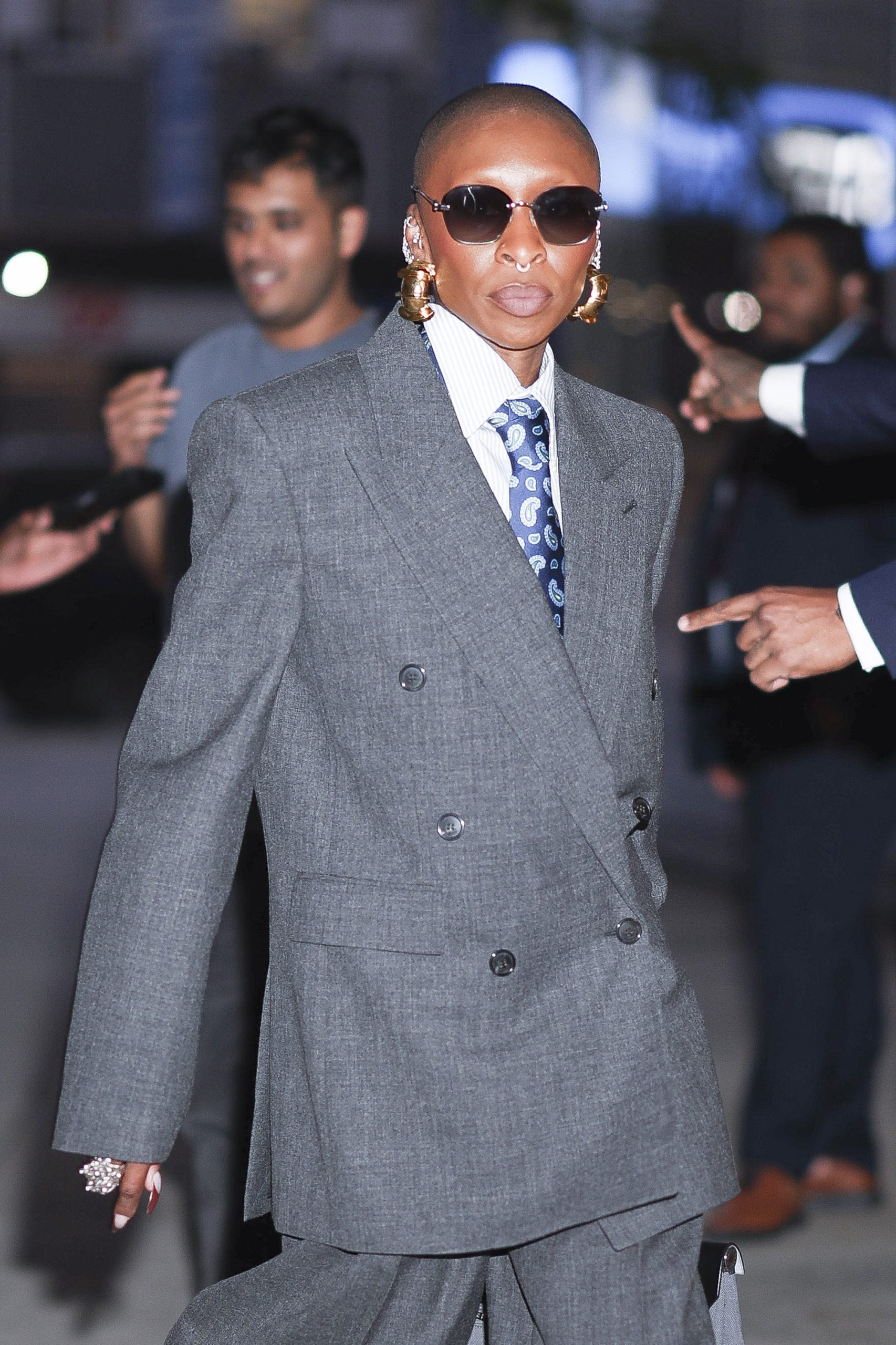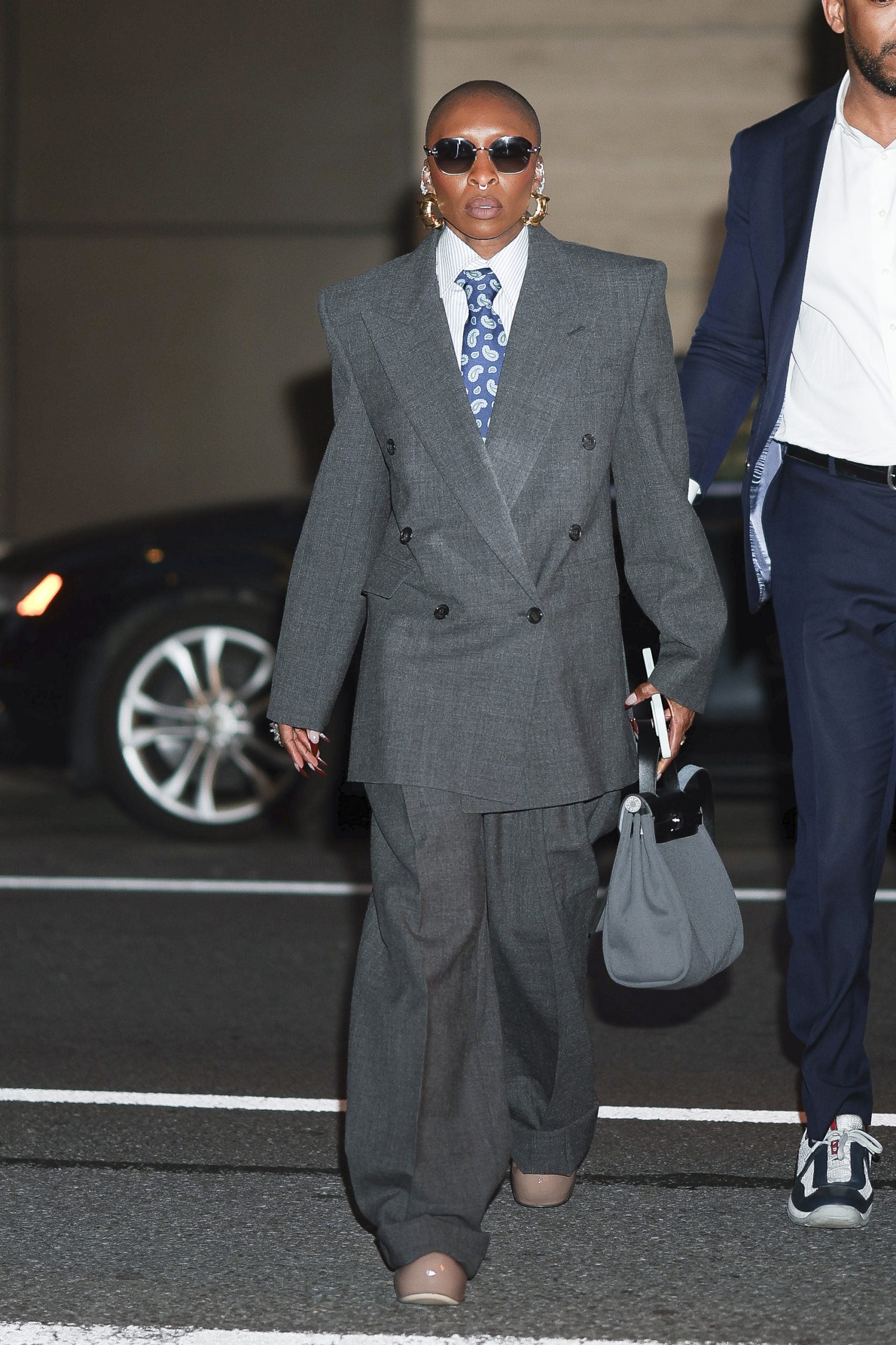 After a high-fashion whirlwind at the Tony Awards as host, Cynthia Erivo hits the streets of New York City in an oversized suit. Erivo seems to be everywhere as of late. For her latest press run rather than wearing street style-inspired pieces the actress and singer opted for a grey suit look that has all of the right lengths and cuts.