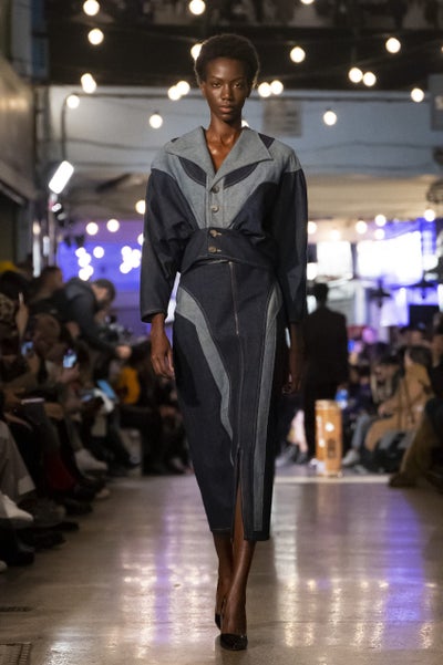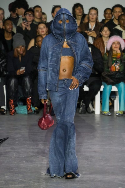 Alongside New York, LFW is also known for the diversity on the runways and in the workrooms, with a significant concentration of visible Black designers. This season Black brands like Feben and Ahluwalia delivered highly anticipated shows, and Mowaola challenged the viewers’ relationship to form and silhouette (see; that drop denim skirt that redefined sagging).