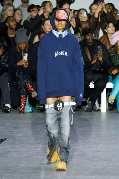 For the designer’s return to LFW, she delivered a collection full of familiar celeb faces (Rico Naasty, Yves Tumor, and Aliyah Bah), fresh takes on the y2k aesthetic, dropped waist? (thigh?) skirts, cowhide prints, new takes on denim, oversized bags, and her Timberland collab.