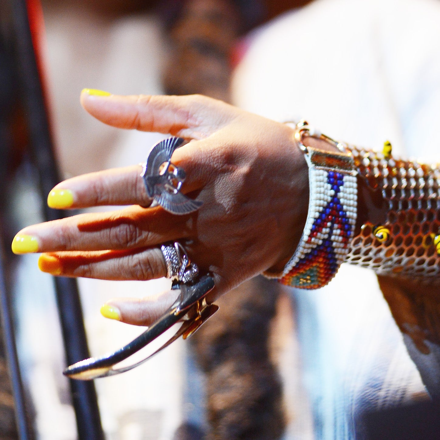 Erykah Badu’s Boho Chic, yet modern and electic style is something we’ve coveted for years. Her arm party though? It’s on another level, if that’s even possible for such a music and style icon. Never afraid to pile it on, Badu’s signature honeycomb cuffs are usually the base for all kinds of fun additions including bracelts, rings, claws and, is that gold foil? Check out all our fave looks here.