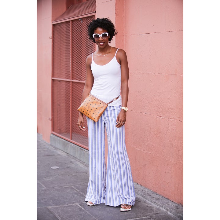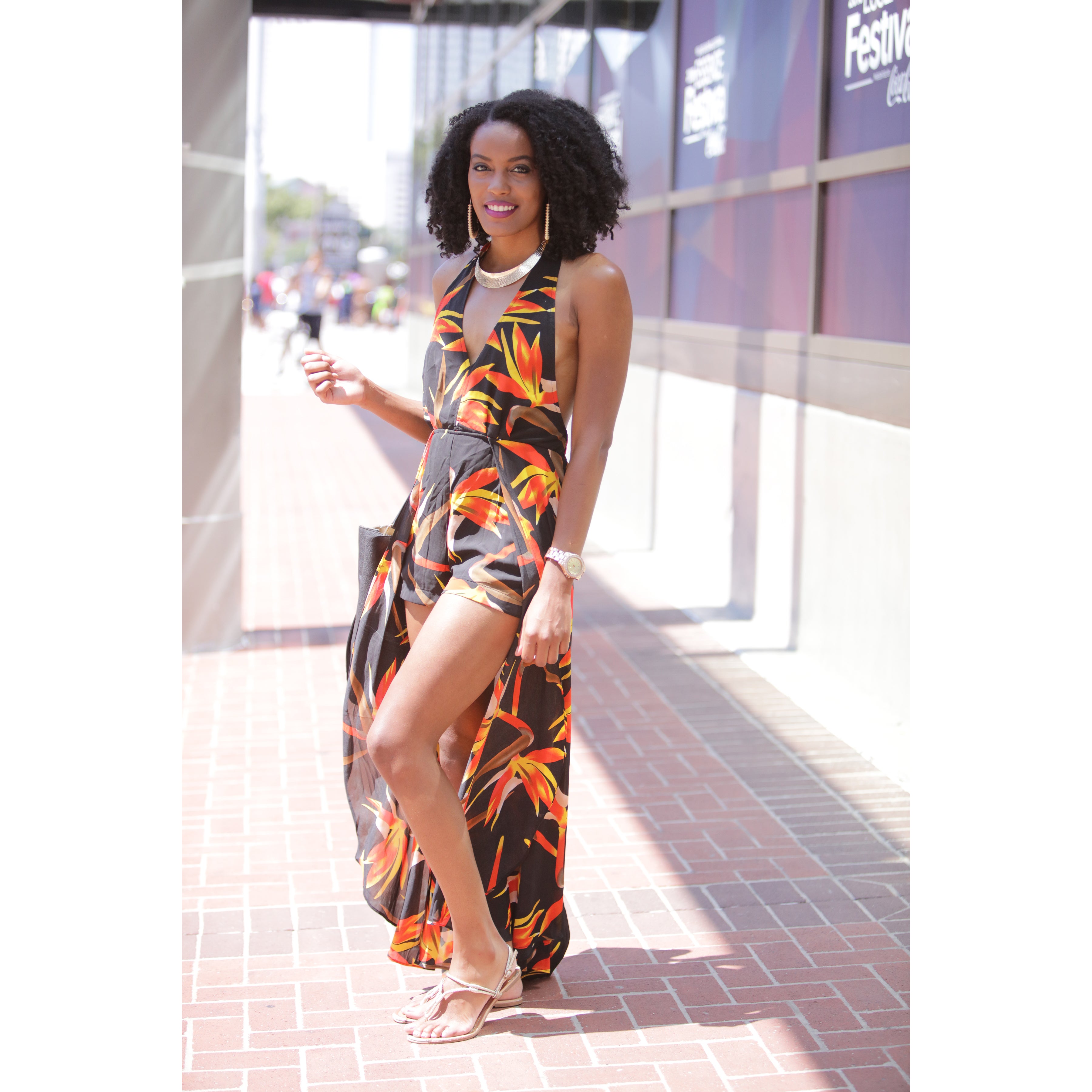 A stylish attendee is spotted on the street during Essence Festival 2016.