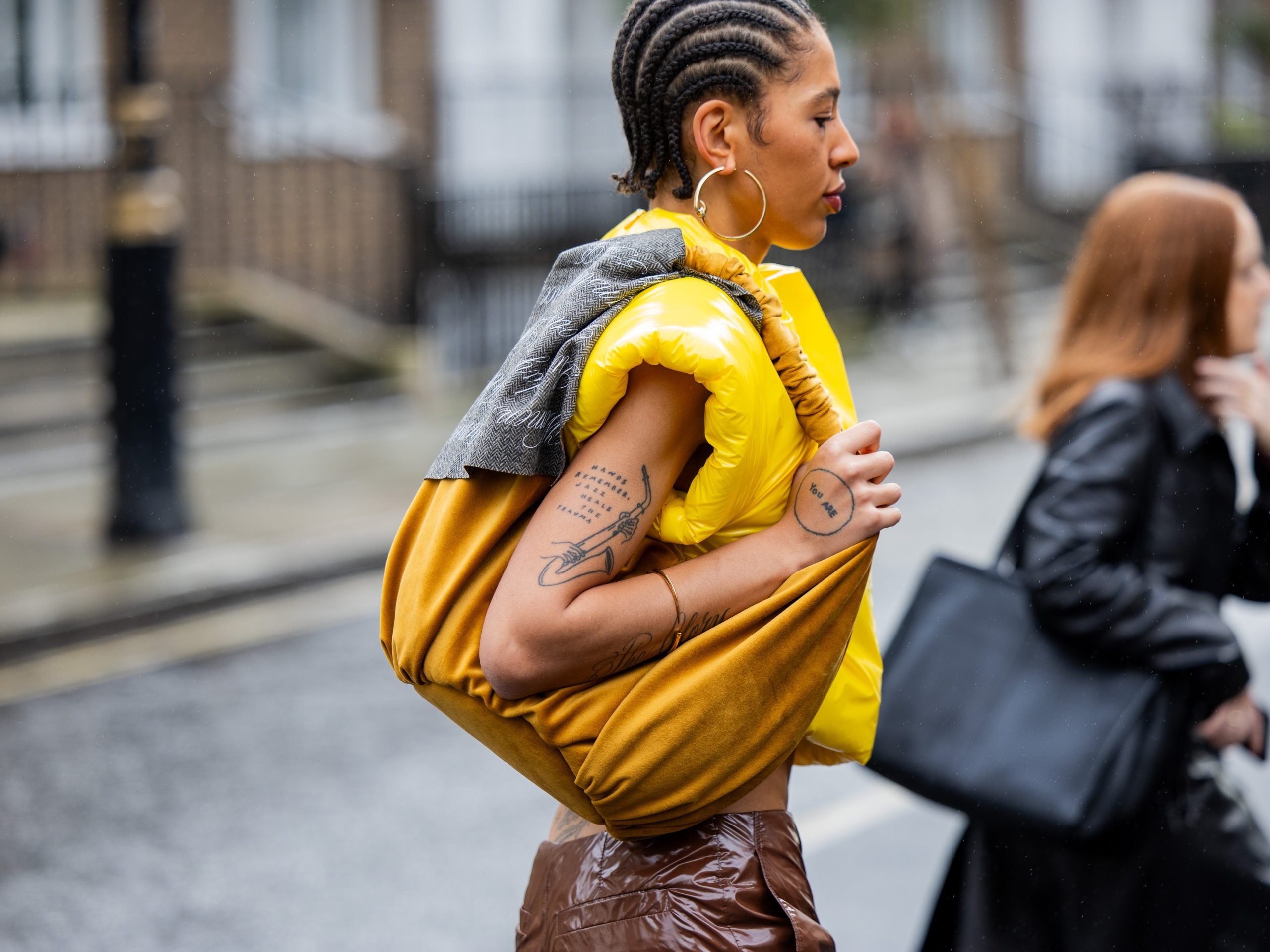 Some showgoers leaned into protective outerwear pieces that were compelling. While other guests arrived at shows in statement denim and expressive accessories.