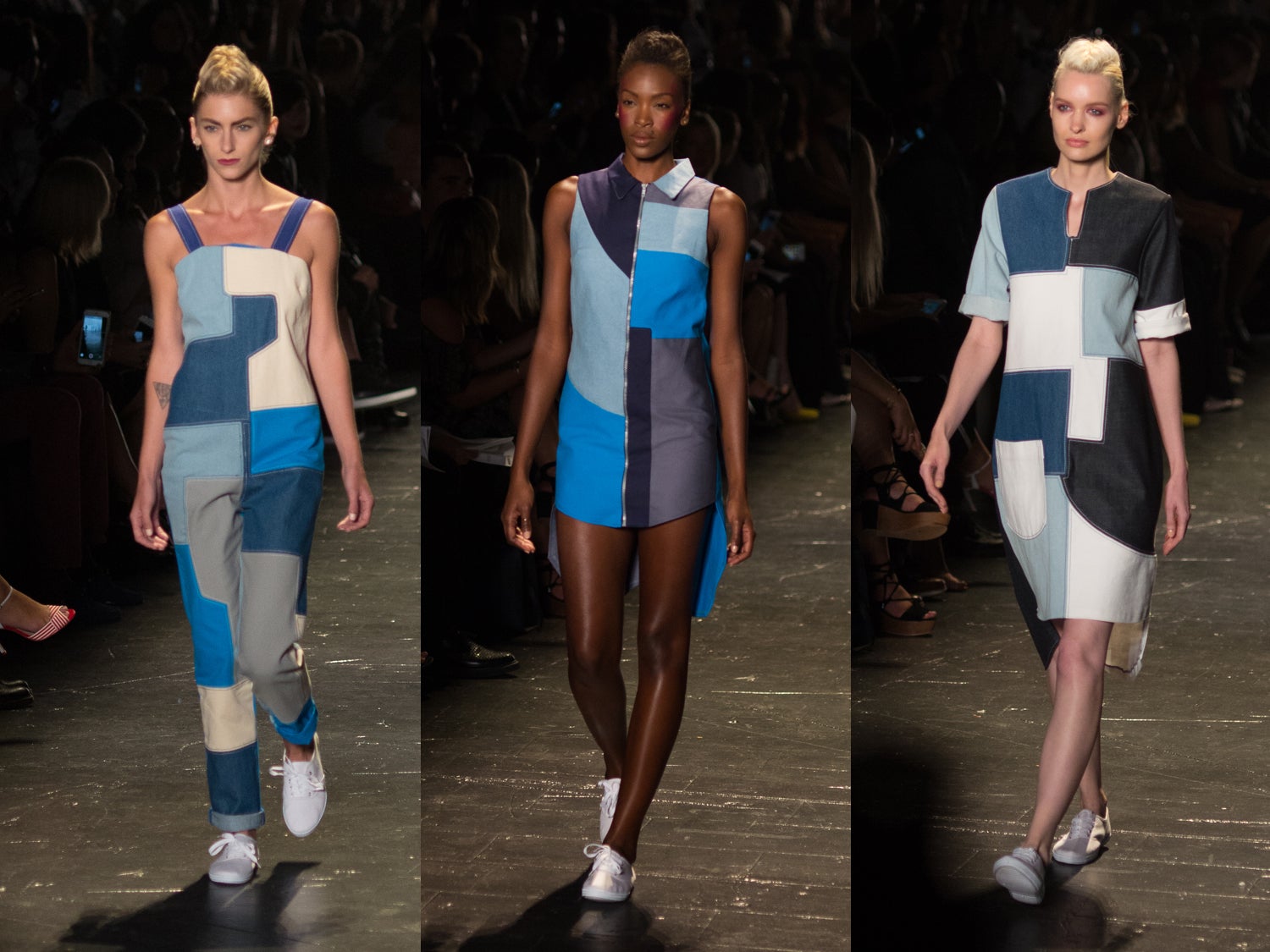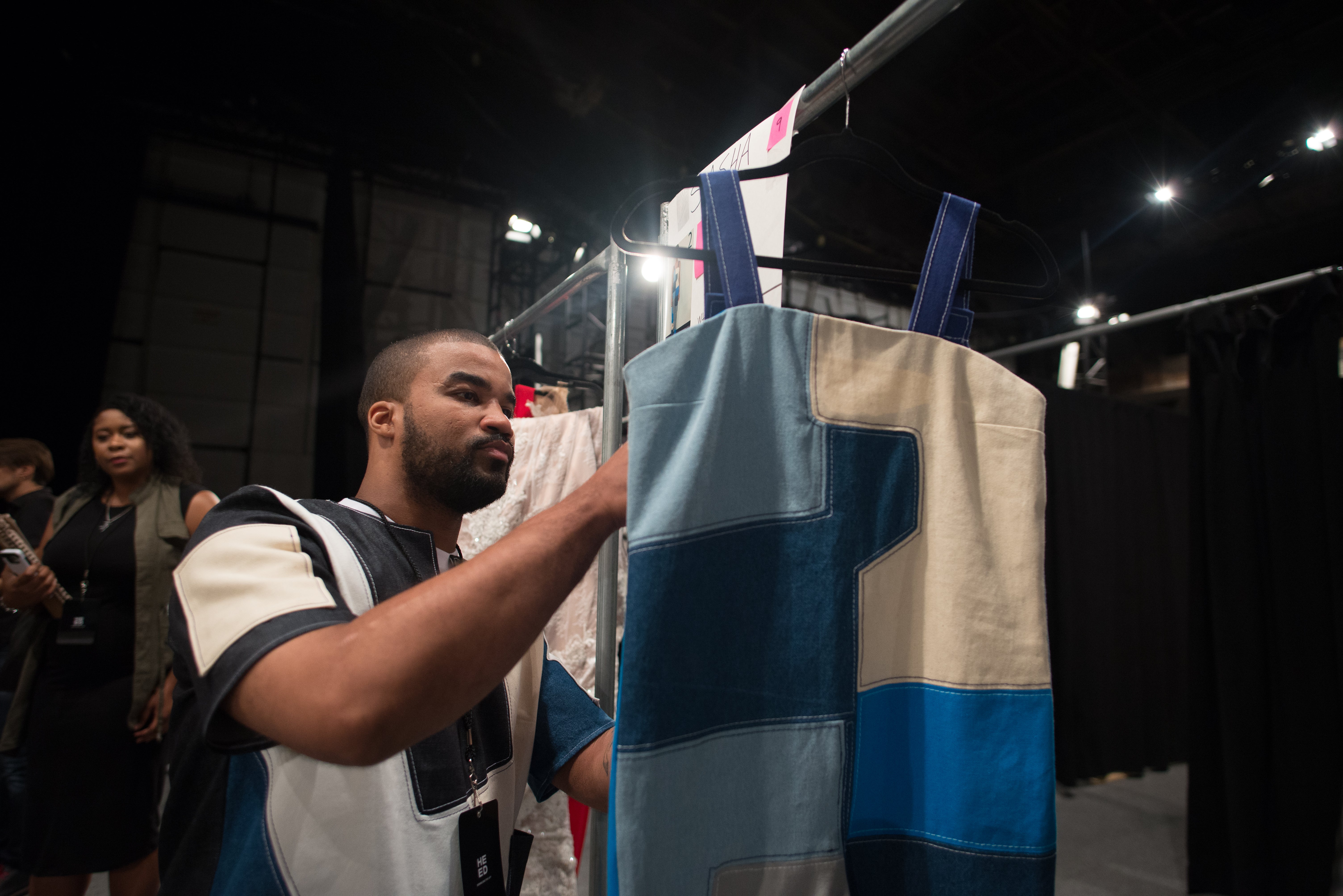 Escoto, a New York native, presented a patchwork denim collection, of which he says, “Each piece is an individual pattern, with different weights and different colors — inspired by the women of New York City. The denim shows the durability and toughness of the New York woman!” He’s been designing for two years and had NO prior fashion experience! Of his ascent to being on the NYFW runway, he states, “I was so overwhelmed. I never touched a sewing machine before.” But yet, here he is.