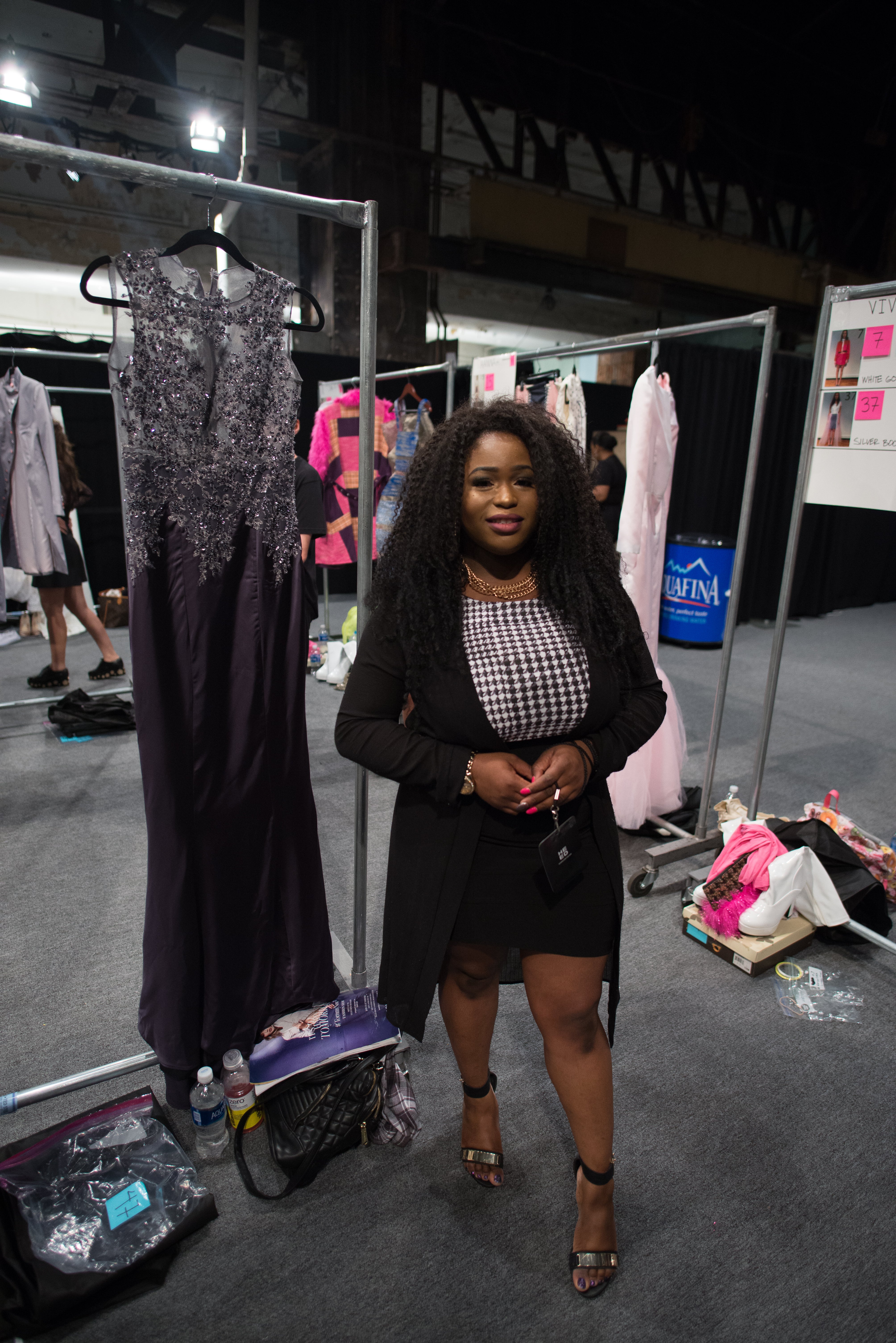 Moreover, what’s a designer garment, without the appeal and realization of a high-fashion, runway model to wear it?! Helping to bring these designers’ visions to life requires a skilled model who can embody the standards of the fashion industry, as well as the aesthetic of the designer. And to my surprise as I was backstage, I ran into the young, up-and-coming model (who also happens to be my sister-in-the-game and fellow Morgan State University alum), Gabrielle Spotwell, whom is still riding a high of having just performed on-stage with BEYONCÉ at last week’s epic VMA’s, and BET’s “How To Rock Denim” (a few weeks before that)!