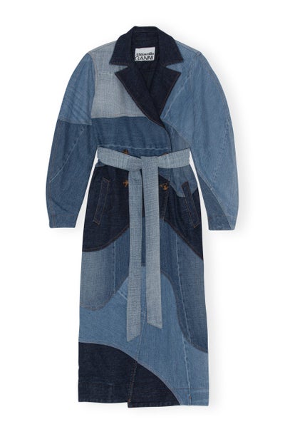 The collection is made up of 16 ready-to-wear styles that showcase the versatility and timelessness of denim. Key pieces include a patchwork trench coat, a co-branded denim suit and tops, and dresses with cut-out details.