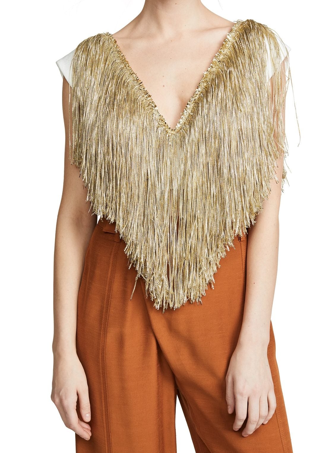 If you’re ready to splurge on a bit of gold fringe extravagance a la Billy, this is the top for you.