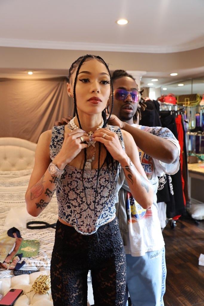 Just this weekend, Leroy got a chance to attend her first Grammy Awards where she collaborated with stylist Todd White to bring her to look to life. White has had the pleasure of curating Megan Thee Stallion’s style in the beginning of her career and has a love for a certain 00’s aesthetic.