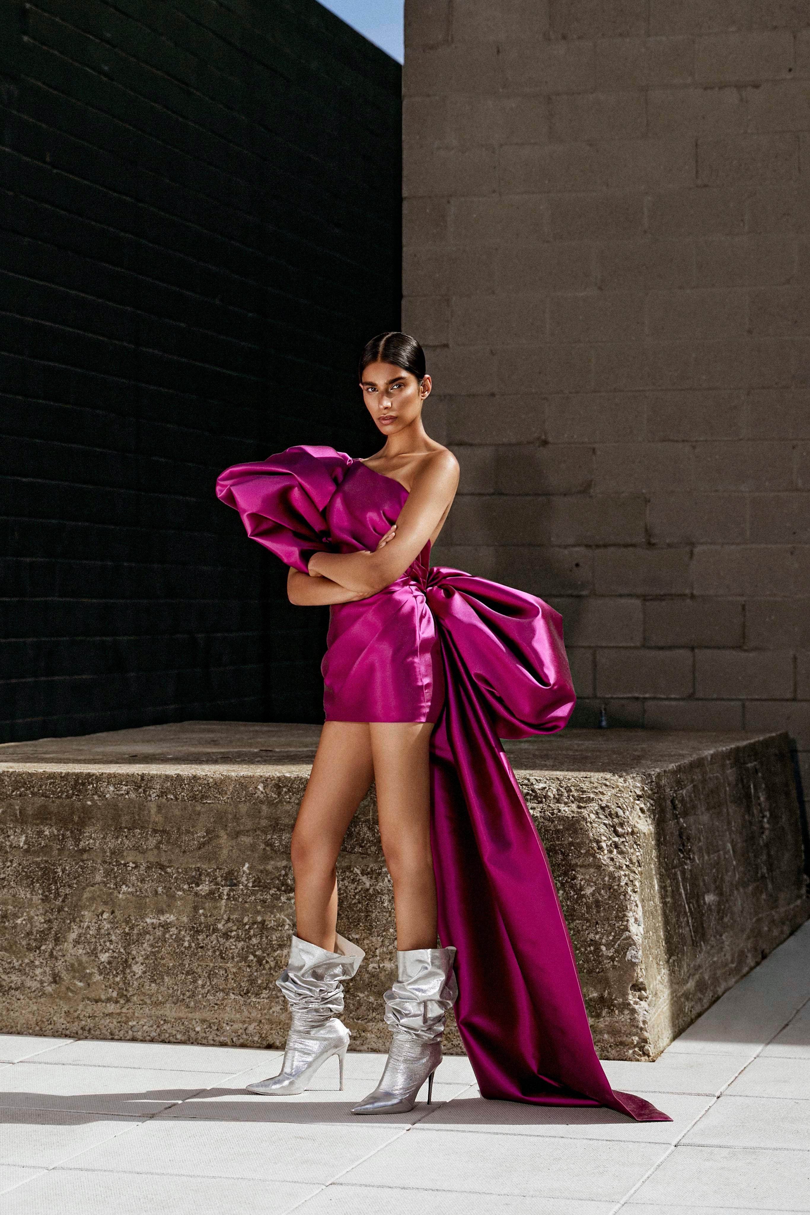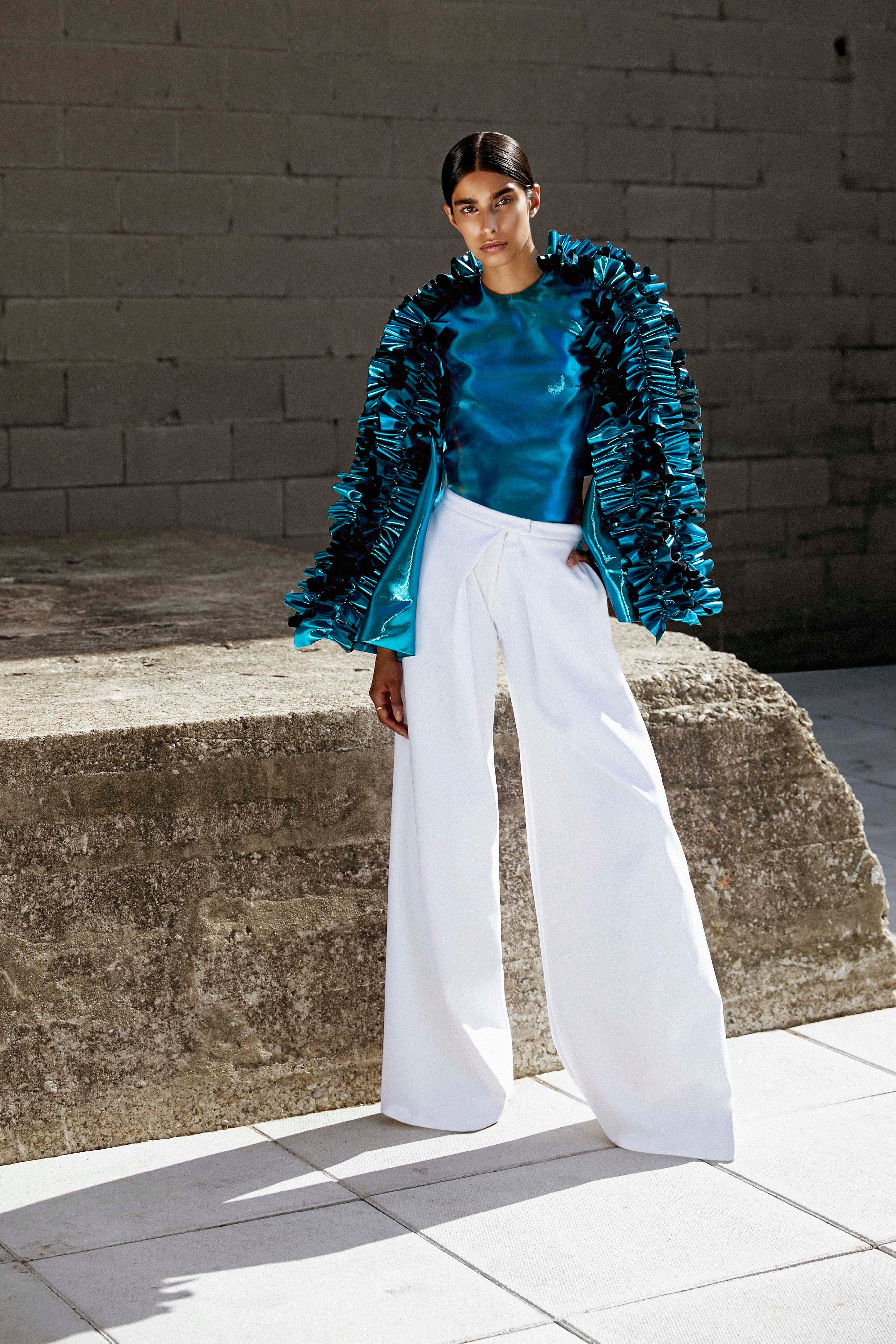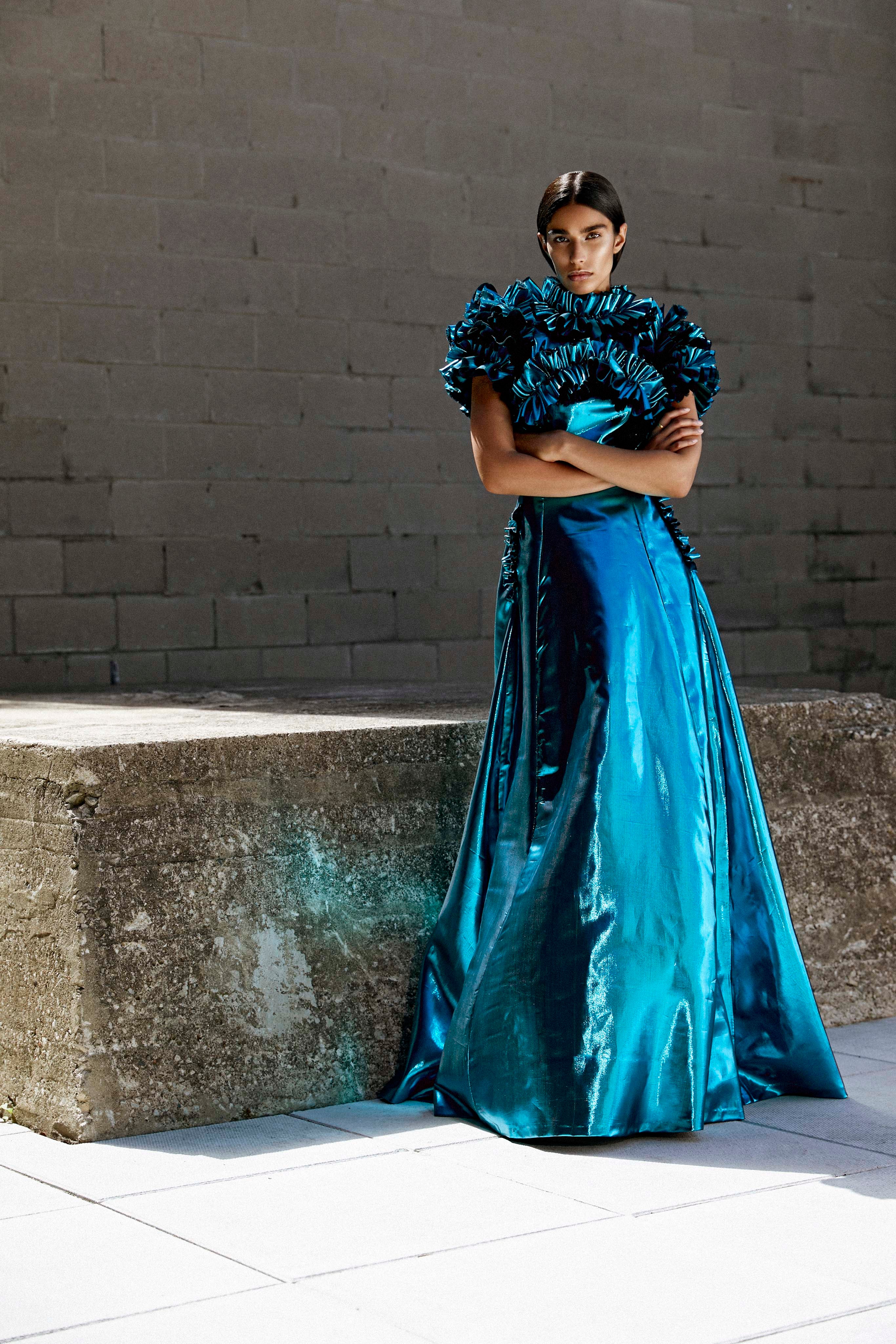 Wong: We’re kind of fabric nerds. We love fabric, and in that way, whatever fabric we introduce into the collection, we research it very well, how best to use it, and different ways of using it. This was a continuation of our Resort 2020 collection, and that collection has tons of neons and brights.