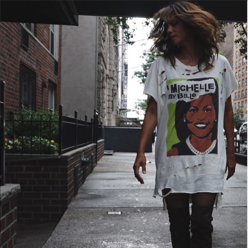 Honoring the one and only Mrs. Obama, Berry rocked a distressed ‘Michelle My Belle’ t-shirt by Los Angeles-based brand The Spiders From Arts to the New York premiere of her upcoming film, Kidnap.