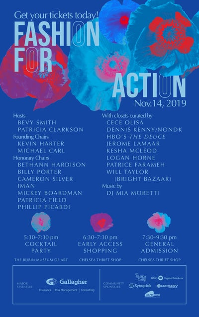 To continue the brands’ groundbreaking work, the charity is hosting a Fashion For Action massive three-day sale with all-new merchandise donated by fashion’s top designers. The sale will also feature wardrobe from the 70s inspired HBO Series, “THE DUECE.”