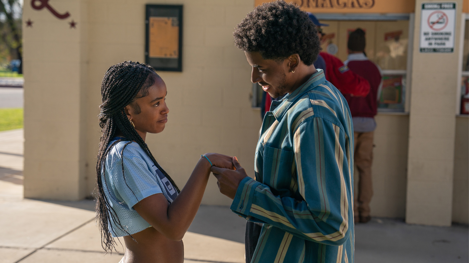 In true Brock Akil fashion, the wardrobe speaks as intentionally as the script. That’s where Tanja Caldwell comes in. The renowned costume designer, best known for her work on both “Black Panther” films, “Coming 2 America,” “Queen & Slim,” and Usher’s Super Bowl LVII Halftime Show, was tapped to craft many of the show’s looks. Keisha, our beloved girl-next-door track star, loves to wear casual, but cute pieces—from sleeveless vintage cut-offs to her layered gold jewelry.